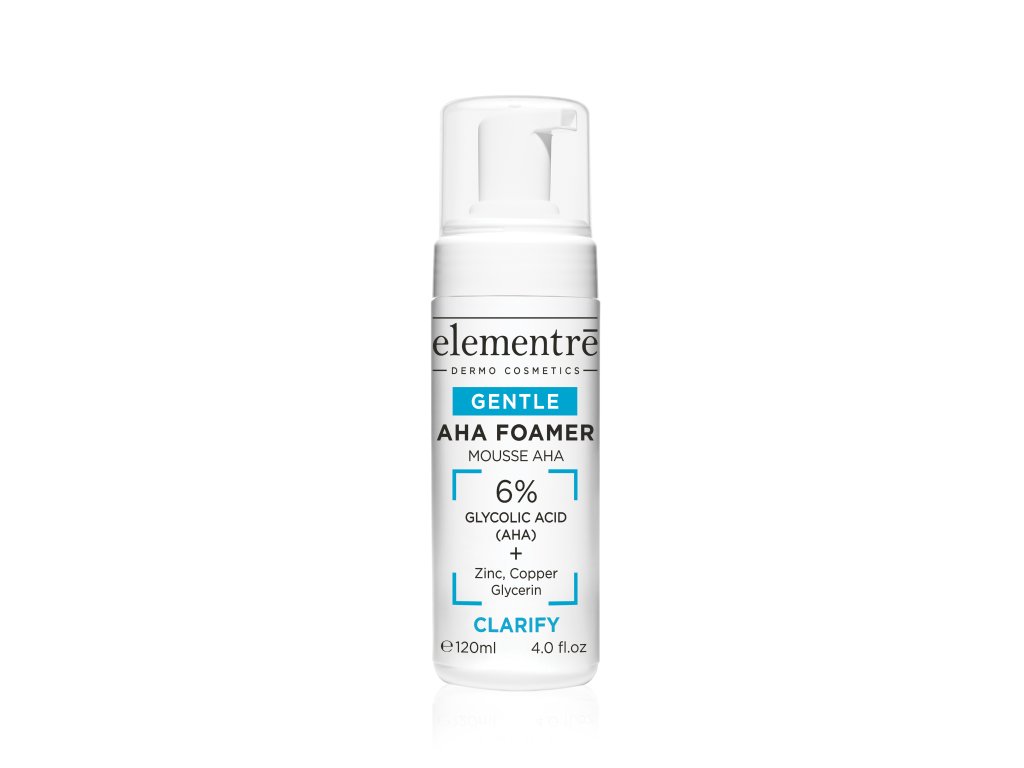 Revitalizujte svou pokožku jemnou, exfoliační, čistící pěnou Elementre 6% AHA. Toto složení obsahuje zinek a měď pro jemnou exfoliaci.