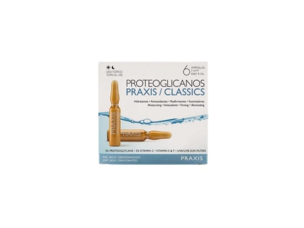 Praxis Classic jsou vysoce účinné ampulky s proteoglykany, které pomáhají hydratovat a zpevnit pleť, dodávají jí vitalitu a přinášejí okamžitý liftingový efekt.