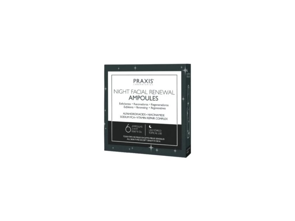 Praxis Night Renewal jsou noční ampule zaměřené na regeneraci a revitalizaci pokožky během spánku. Podporují obnovu pleti, zlepšují texturu a dodávají jí mladistvý vzhled.