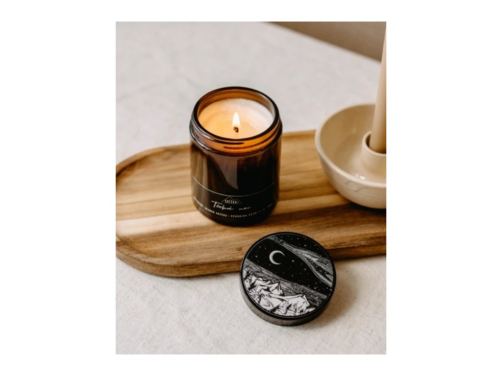 Svíčka Tichá noc je ideální volbou pro ty, kteří hledají chvíle klidu a pohody během svátečních večerů. Svíčka je vyrobena z kvalitního sójového vosku, který hoří pomalu a bez toxinů, což přináší čistší a déle trvající zážitek. Díky jemné a vyvážené vůni inspirované zimní nocí, s tóny lesních jehličnanů, lehkého koření a jemného sladkého základu, vytváří harmonické prostředí, ve kterém je radost odpočívat. Elegantní skleněná nádoba s autorskou malbou na víčku navíc dělá ze svíčky krásný doplněk do každého interiéru, který navodí útulnou atmosféru pro sváteční chvíle či večerní meditace.